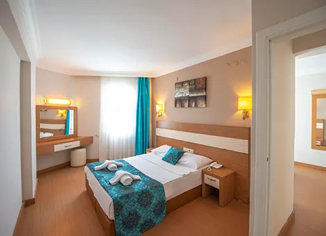 Tesisimizde 31 adet Aile Odası mevcut olup tamamı 1+1 şeklinde ara kapılıdır. Maximum oda kapasitesi 4+1 veya 4 yetişkindir. Aile odalarımızın tamamında; Split Klima, Balkon, Seramik Zemin, Minibar, TV, Saç Kurutma Makinesi, Duş, Telefon bulunmaktadır.